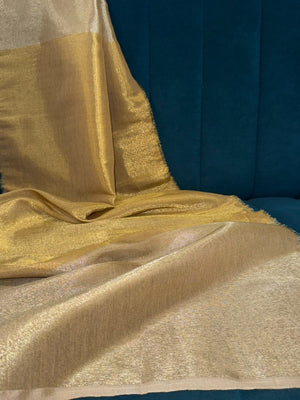Banarashi Handloom Pure Tissue is a lightweight, shimmering fabric handwoven with silk and zari. Known for its golden sheen and graceful drape, it is ideal for sarees, dupattas, and festive ensembles, embodying elegance and tradition.