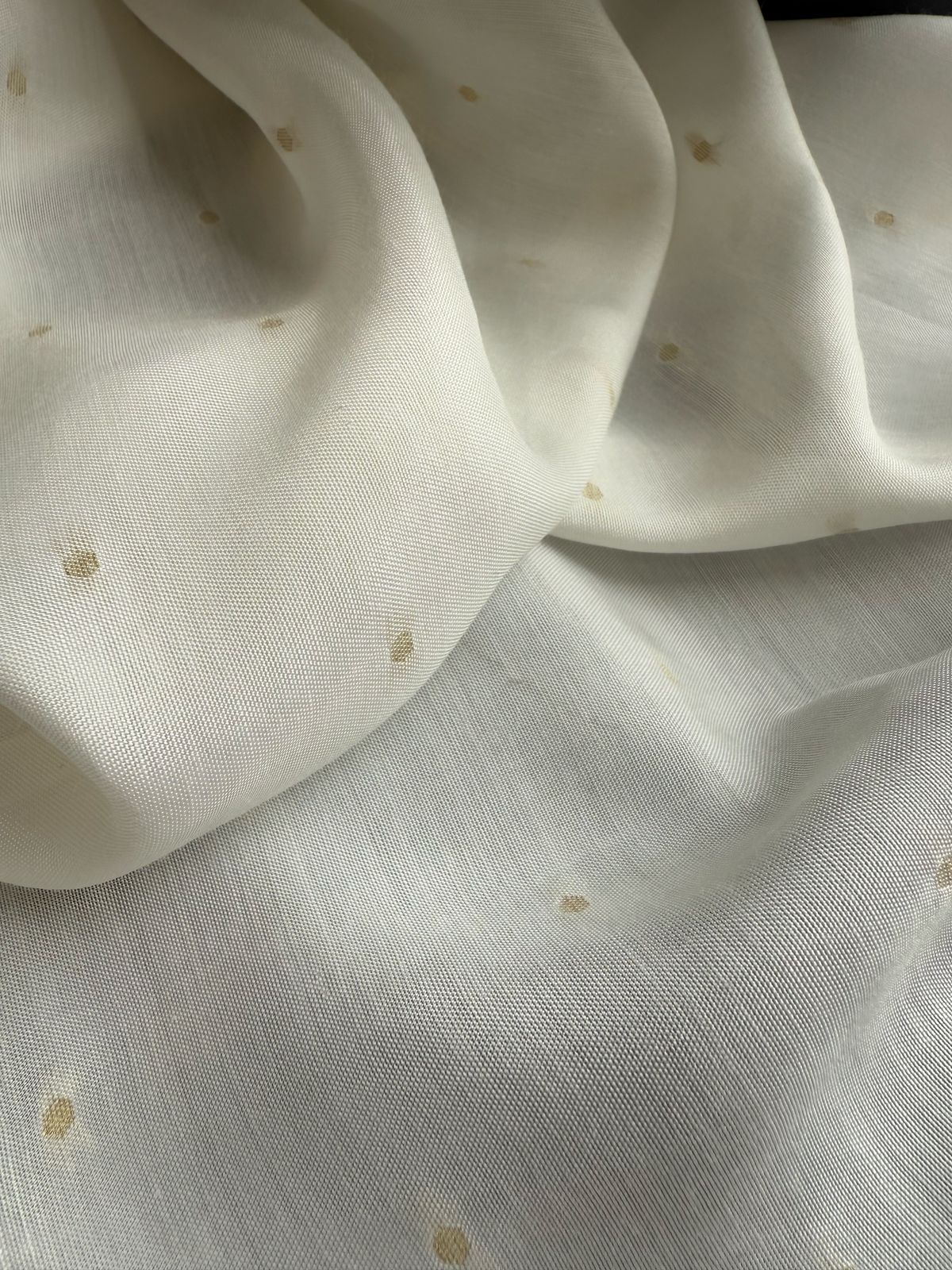 Maslin Butti is a lightweight, breathable fabric known for its soft texture and delicate woven buttipatterns. It offers a comfortable feel and an elegant look, making it ideal for ethnic wear like sarees, kurtas, and dupattas. Its subtle design and airy quality make it perfect for both casual and festive wear.