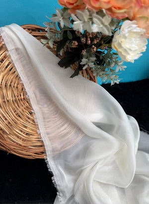 Pari Silk is a lightweight, sheer fabric known for its crisp texture and delicate appearance. Organza net possesses a subtle sheen that adds an elegant touch to garments and decor. Its airy and transparent nature makes it ideal for creating overlays, veils, and decorative accents in formal wear, bridal gowns, and evening attire. Additionally, organza net's stiffness allows it to hold its shape well, making it suitable for crafting structural elements like ruffles, bows, and puffed sleeves.